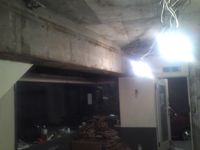 天井は見事にぶち抜きました。するとあら不思議、こんなに広かったっけ?と2割り増しで狭い店内が開けました。